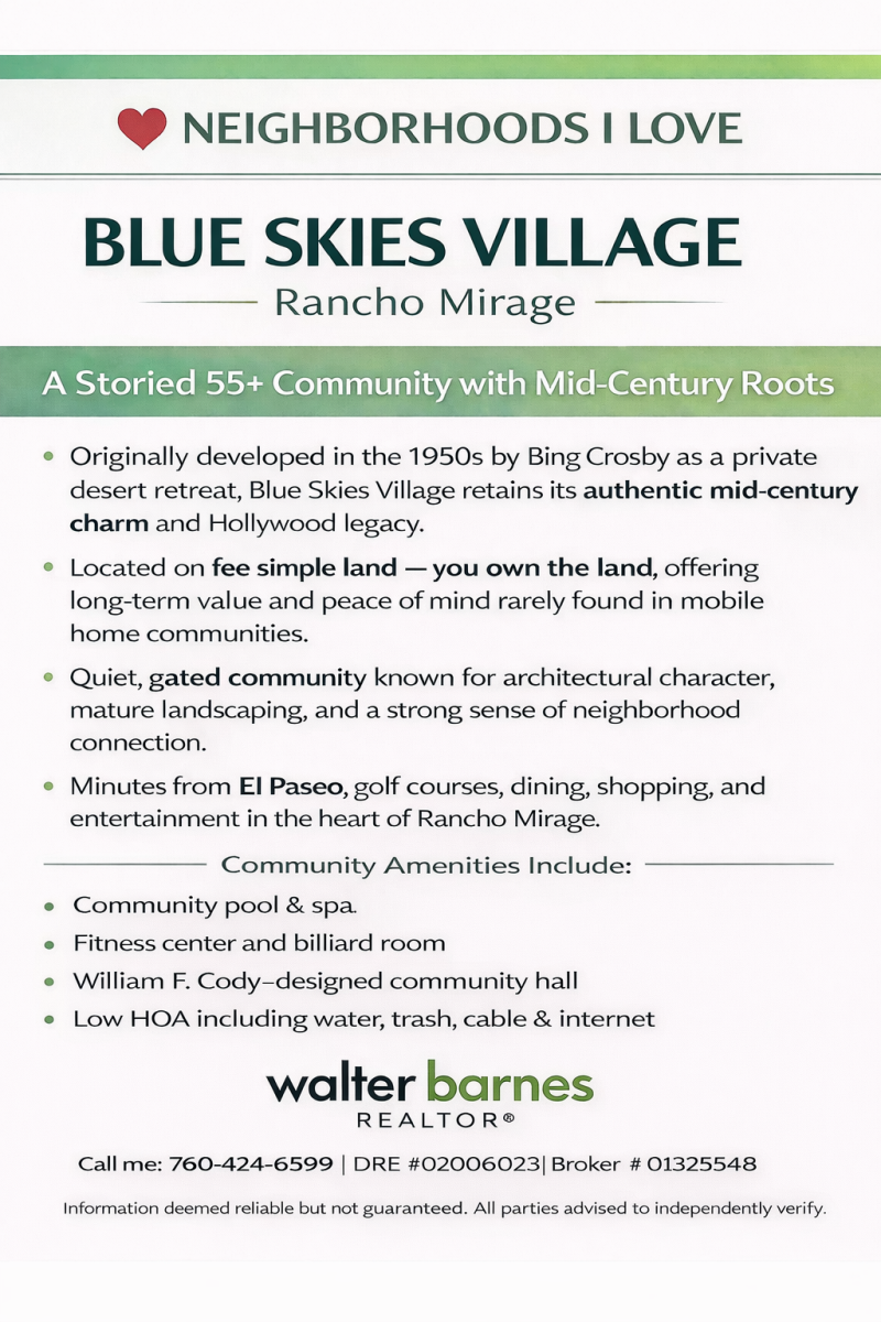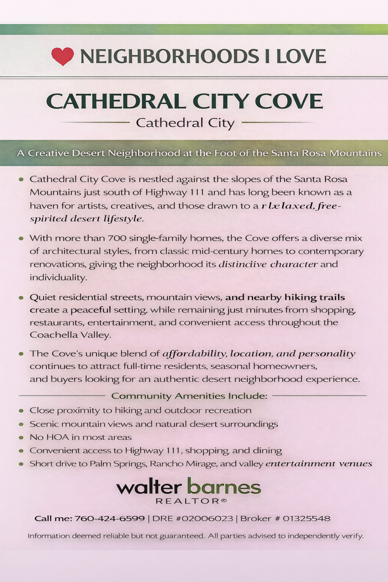 This section is dedicated to the wide variety and diverse neighborhoods in the Palm Springs area. Each unique in their own way and who knows,